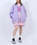 モノトーンコーデにパステルのスーパービッグMA-1でシンプルながらもガーリーなコーデに♪
