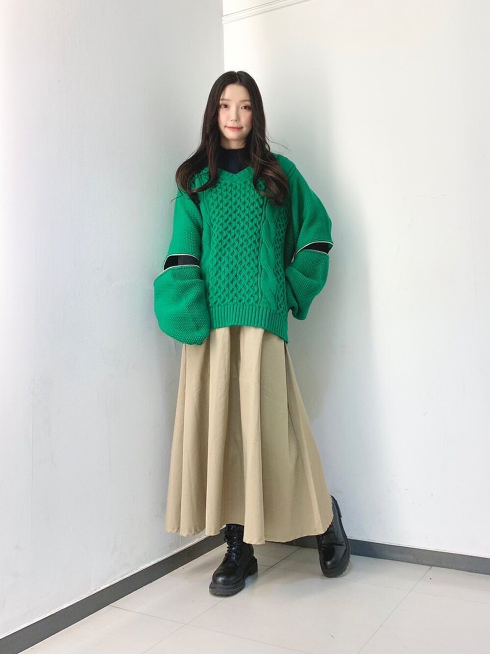 袖のZIPが取り外しできるニットは少し袖を開けてインナーをチラ見せ♪ 個性派ガーリーコーデ★