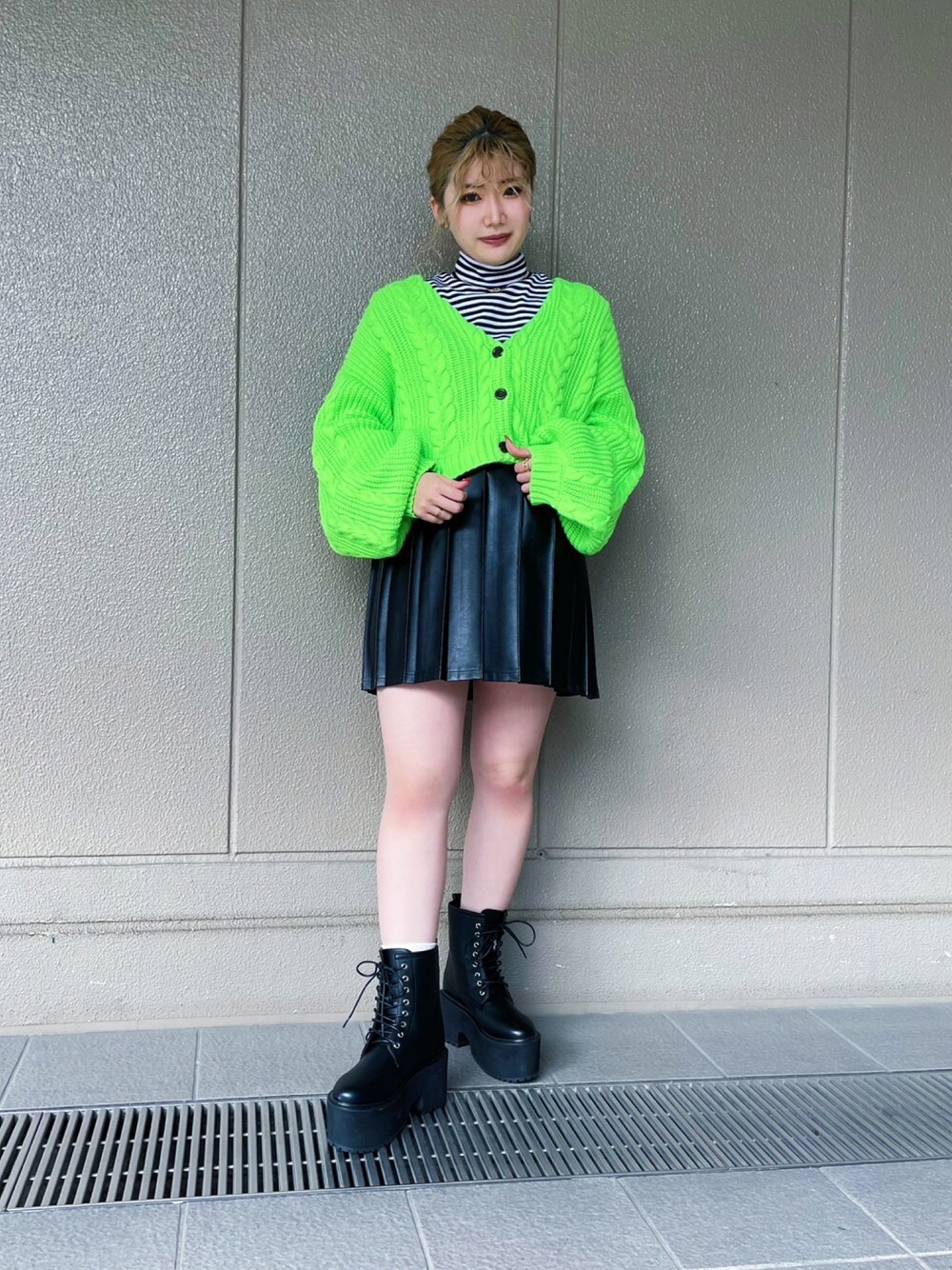 ゆったりとしたカーディガンとミニスカートでガーリーなコーデに♪