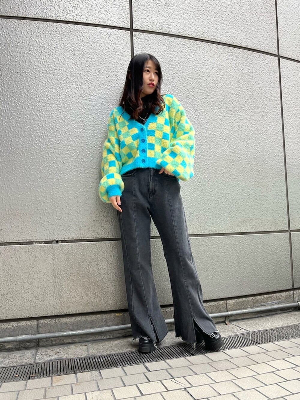 PUNYUS (PUNYUS)のデニムパンツ「フロントスリットデニムフレアパンツ」を使ったコーディネート