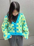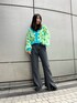 ゆったりとした袖がかわいいカーディガンはショート丈でパンツと合わせると脚長効果◎