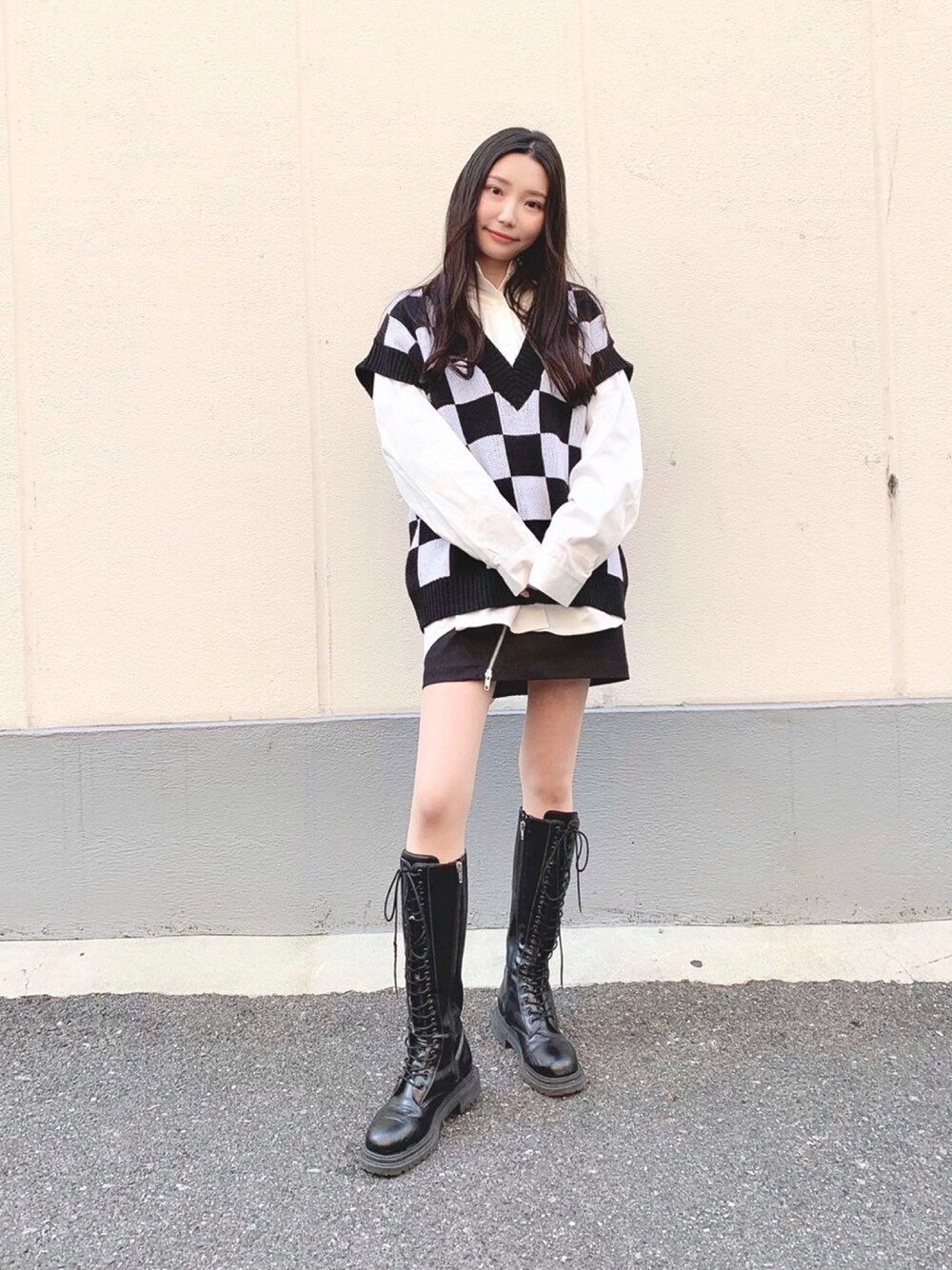 シャツ×ブロックチェックベストでモノトーンなスクールガール風コーデ★