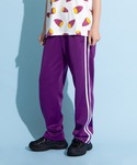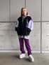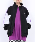 ブルゾンの差し色のパープルとジャージのカラーをあわせてさりげなくオシャレに♪