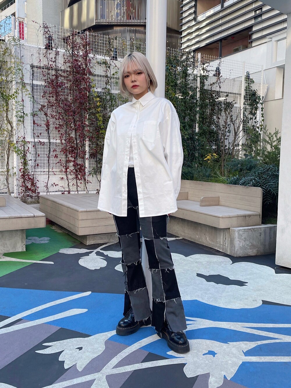 PUNYUS (PUNYUS)のデニムパンツ「パッチワークデニムフレアパンツ」を使ったコーディネート