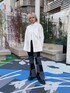 白シャツに切り替えデニムが映える春コーデ♪ シンプルながらも個性のあるコーデに。