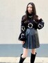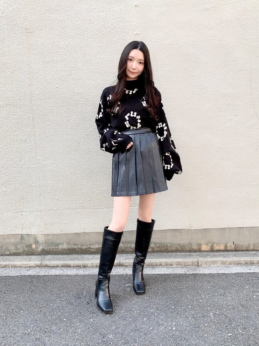 ゆったりとしたボリューム袖がかわいいニットにミニスカート♪ ブラックでまとめた大人ガーリーコーデ★
