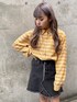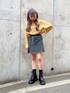 春らしいカラーのチェックシャツでガーリーなコーデに🧡オールシーズン使えるデニムスカートはリメイク風のデザインが可愛くてオススメ🤍