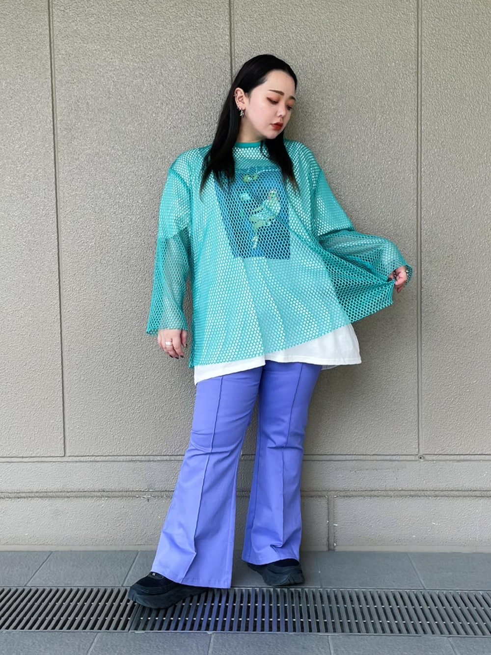 Tシャツに今季流行りのメッシュトップスをレイヤード🦖🧬 カラー×カラーが可愛い春カラーコーデ🌈