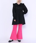 Tシャツにフレアパンツのシンプルなコーデ💡 ピンクのフレアパンツが目を惹く、、🤩💖