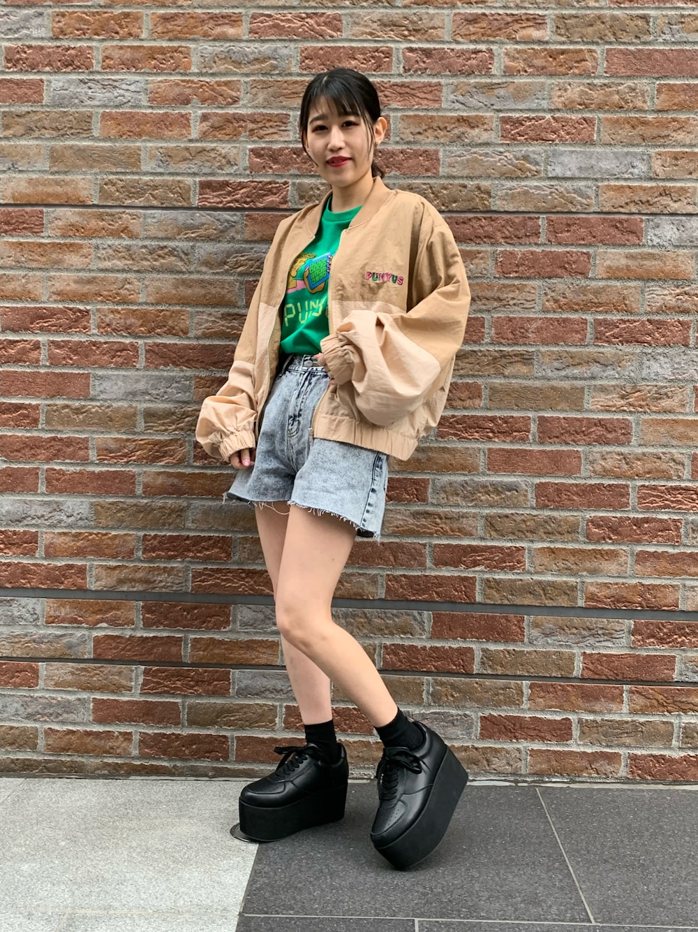 PUNYUS (PUNYUS)のナイロンジャケット「バイカラーナイロンブルゾン」を使ったコーディネート