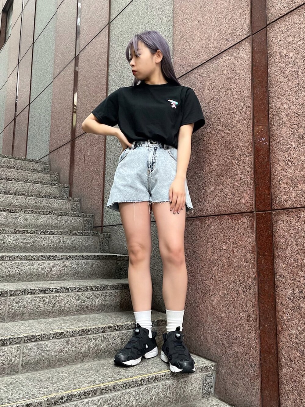 定番のワンポイントTにデニムショートパンツでシンプルなコーデに🖤 夏のレジャーにもオススメコーデ😍