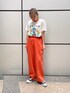 ビタミンカラーのパンツが夏らしくて可愛い🍊 ウエストがゴムになっているので履きやすさと ウエストマークで脚長効果抜群😍