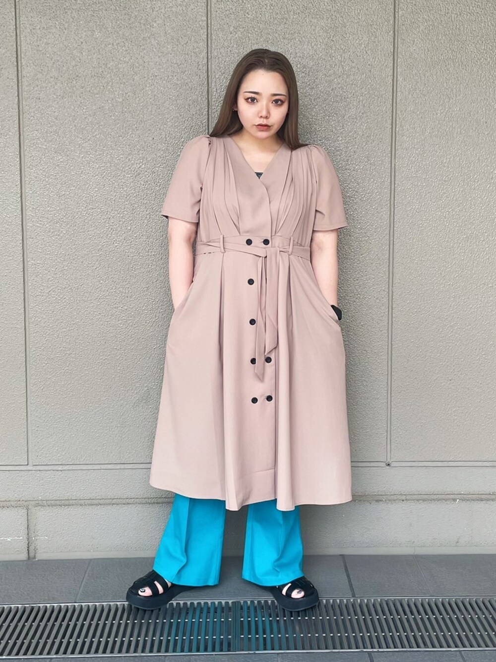 大人な印象のカシュクールワンピ🥂 カラーパンツを合わせてちょっぴり個性派コーデに🫐