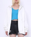 シンプルなモノトーンのタンク×パーカーに パッチワークデニムが映えるコーデ💙 梅雨時期にもサラッと羽織れるパーカーは必須アイテム🤍