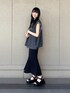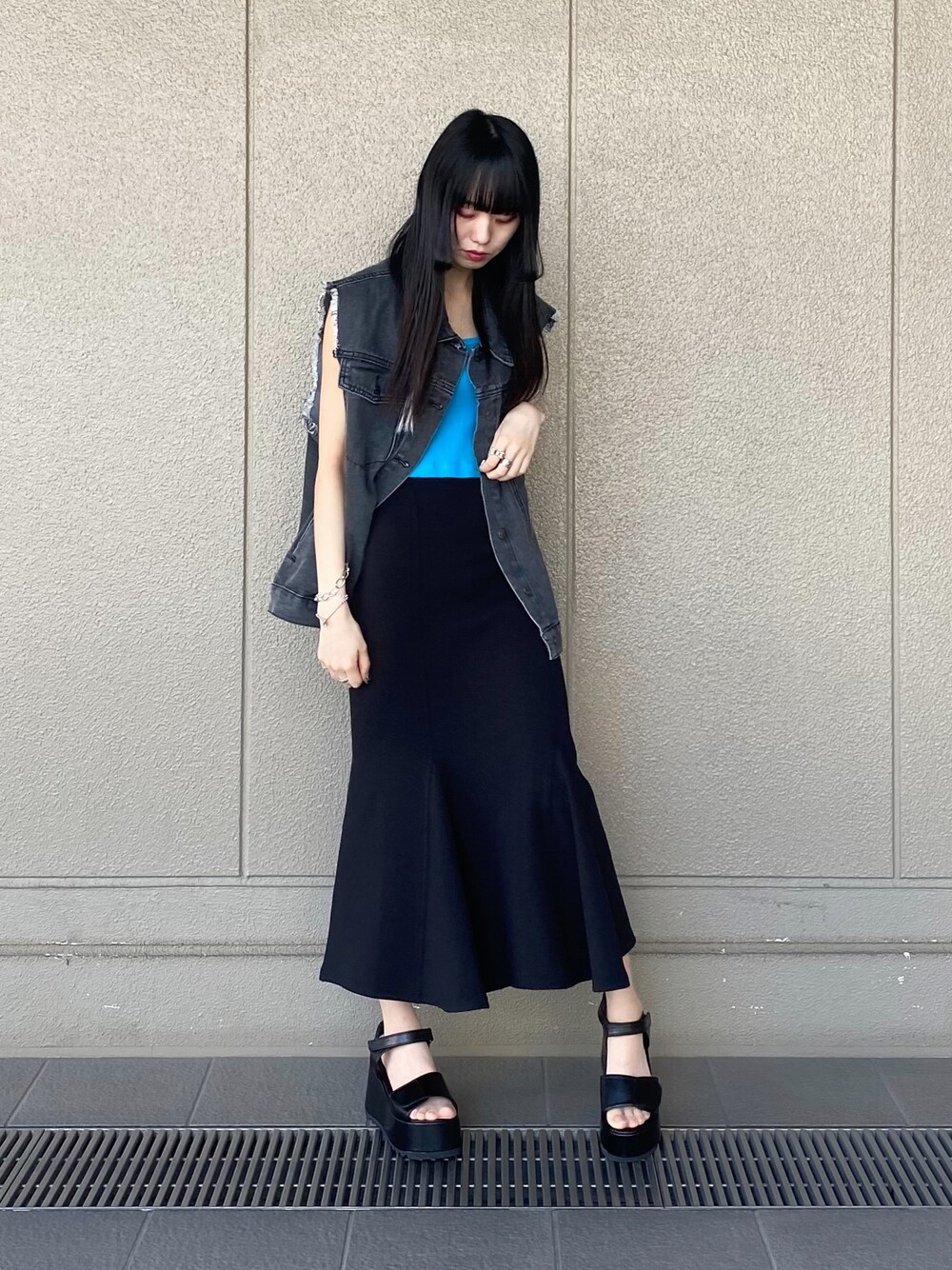 ブラックメインにブルーのインナーが映える 夏コーデ🌊💙 マーメイドスカートでトレンドも取り入れた 大人カジュアルなコーデに🖤