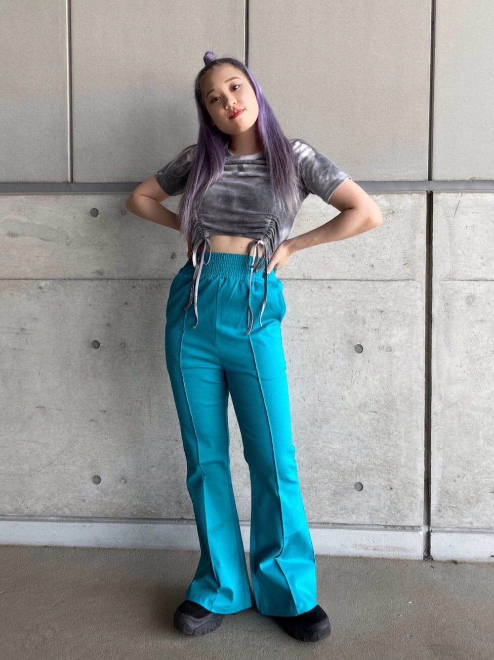 ドロスとトップスは前の絞り具合で 丈の長さを変えられるスグレモノ🖤 ハイウエストのツイルパンツを合わせて 脚長効果バッチリなコーデに🤩