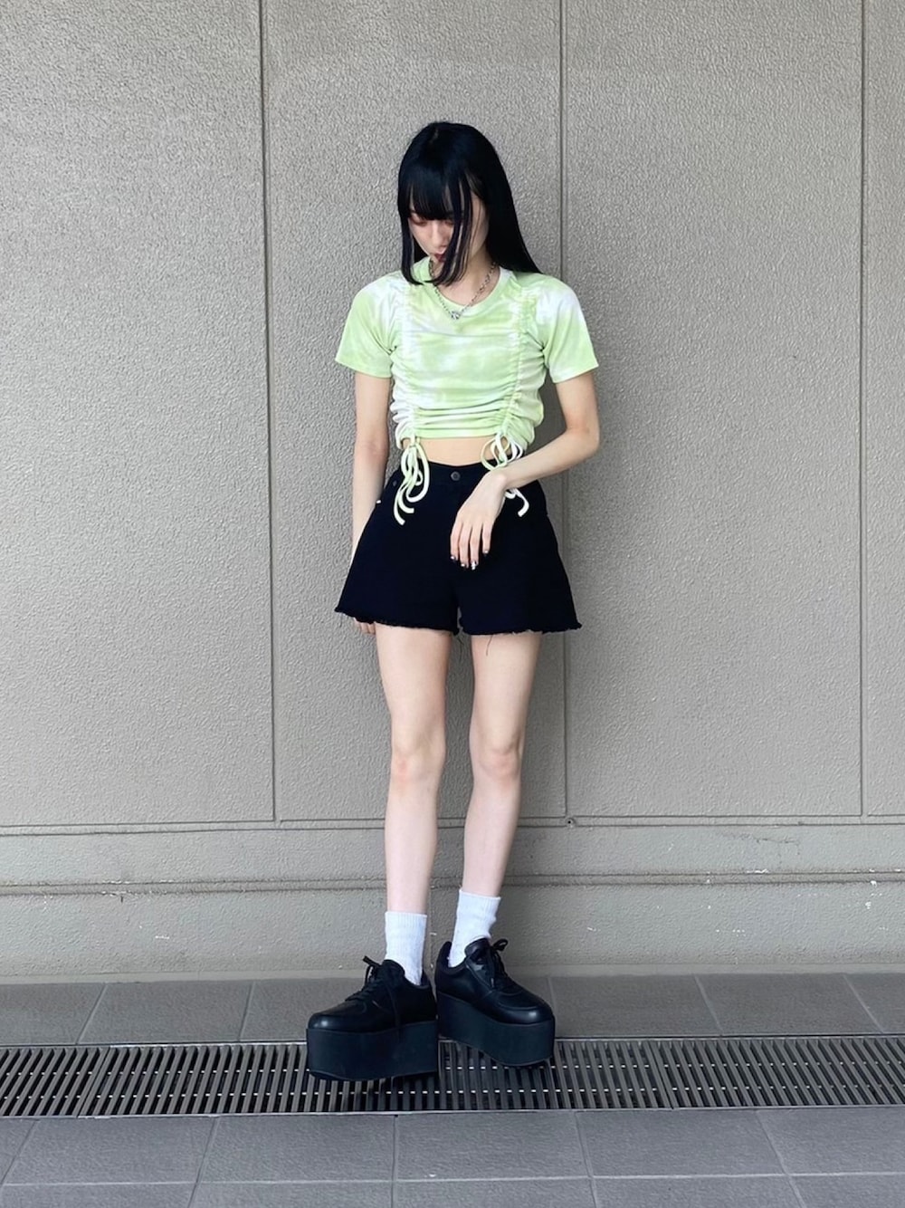 PUNYUS (PUNYUS)のTシャツ/カットソー「タイダイ柄ドロストトップス」を使ったコーディネート