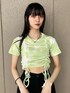 タイダイ柄が夏らしいドロストトップス🌱 前の絞りは自由に調整出来るので きつく絞ってお腹を出しても 緩く絞って長めに着ても可愛いです👌✨