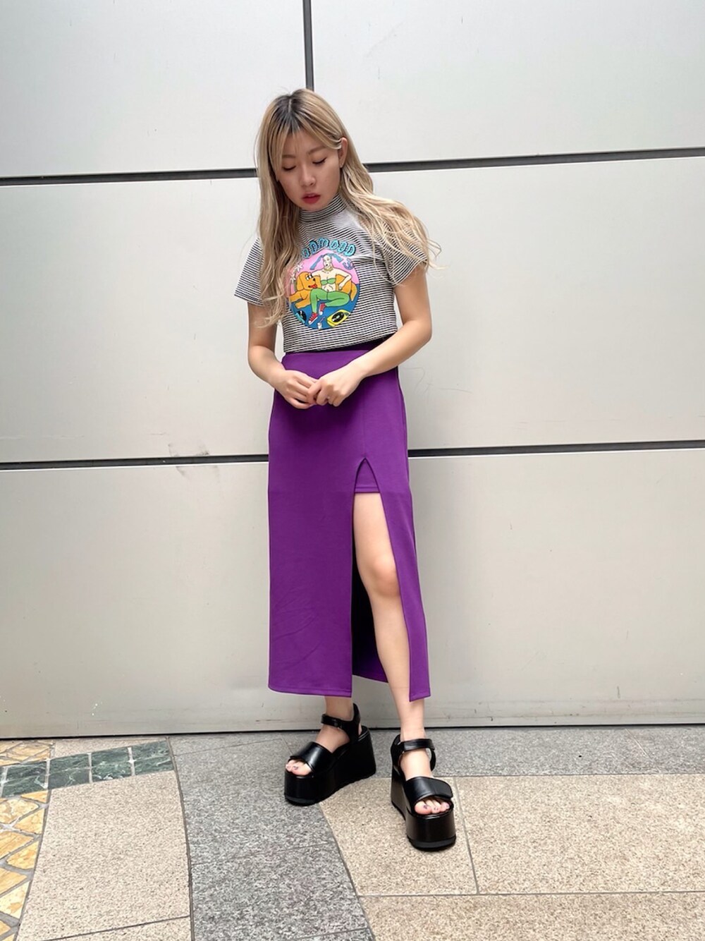 スリットスカートで大人っぽく トップスで遊び心を入れた ちょっぴり大人なカジュアルコーデ💜