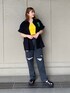 ブラックのコーデに夏らしい イエローが映える🤩🍋 ダメージデニムは夏はもちろん オールシーズン使える必須アイテム🌟