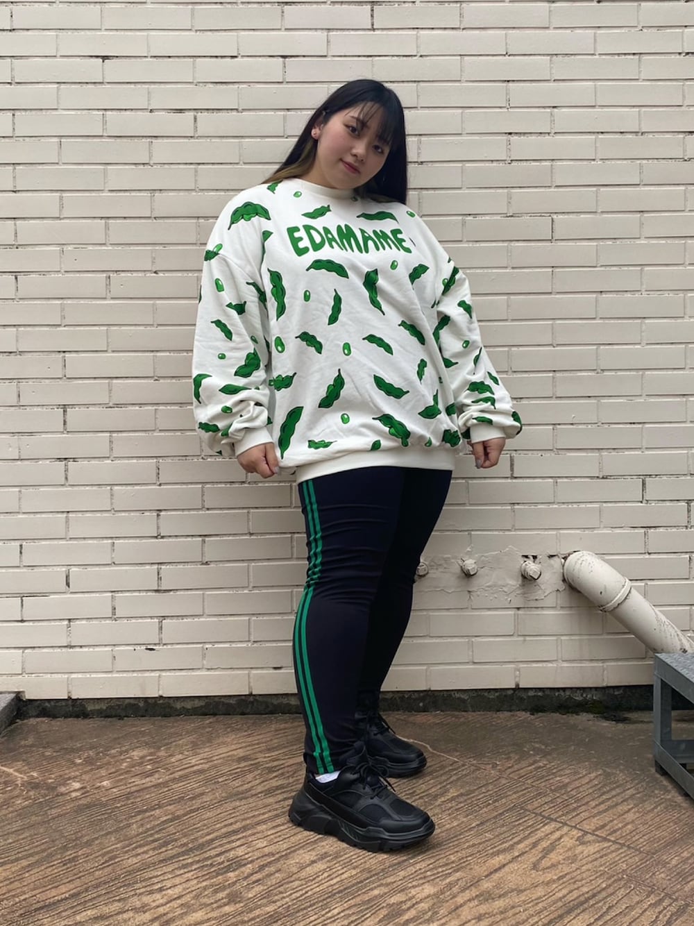 大人気のフード柄スウェットに カラーを合わせたレギンスパンツで ラフな個性派コーデに💚✨