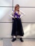 シンプルなモノトーンコーデに カラーのカーディガンが映える💜✨ 気温や気分に合わせてカーデの使い方も様々😘