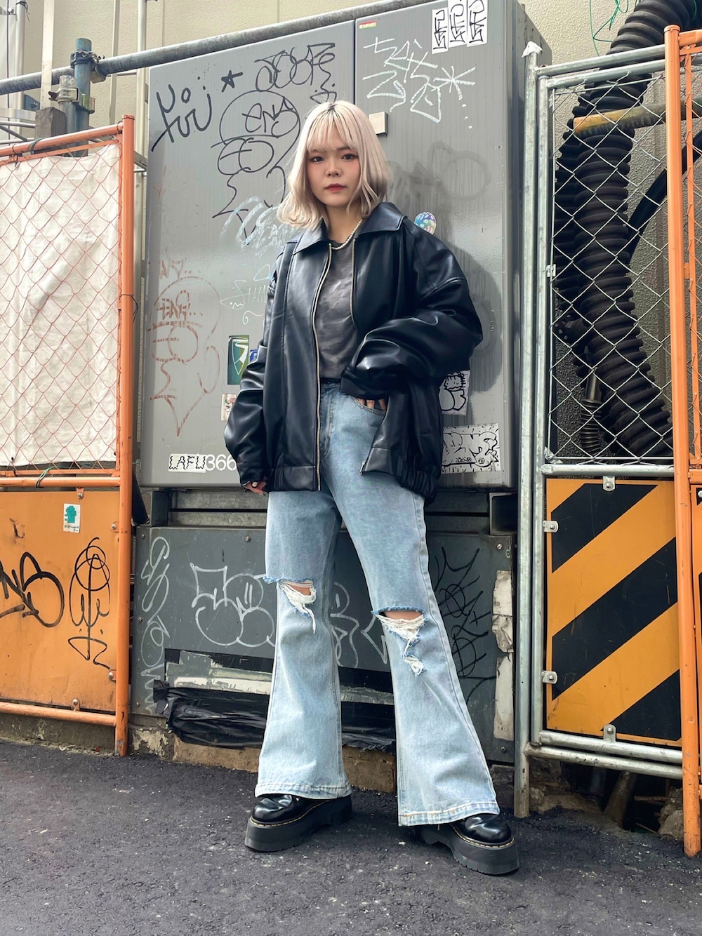 レザージャケットとダメージデニムで メンズライクな強め女子コーデ🖤 様々なコーデに合わせやすいレザージャケットは 大きめサイズでゆったり着れるのもポイント♪