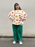 かぼちゃの総柄にグリーンのパンツを合わせて 季節感のあるコーディネートに🎃 パンツはコーデュロイ素材で暖かく ゆったりと履けておすすめ😉