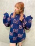 ゆったりニットを1枚でワンピ風に💙 袖がとってもボリューミーで ロゴのカラーが可愛いニットです💞 ユニセックスで着れるアイテム👫