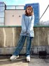 ブルー系でまとめた春コーデ💙🌸 シンプルながらもドラゴン柄のパンツでちょっぴり外した個性派コーデに♪