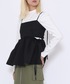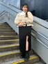 シャーリングトップス×スリットスカートで 大人ガーリーなコーデに🖤🤍 まだ少し肌寒いこの時期には チュニックの中にハイネックTのレイヤードがおすすめ!