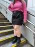 ピンクのリブトップスにZIPスカートの シンプル春コーデ🌸 ZIPやベルトがついたスカートは1枚で コーデが一気にオシャレに💗! 周りと被りたくない人にもおすすめ♪