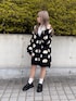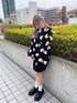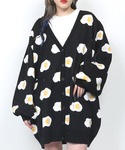 目玉焼きの総柄が可愛すぎるカーディガン🍳💞 ロングカーデなのでワンピ風に着るのがおすすめ🖤 PUNYUSらしいpopなモノトーンコーデに😉
