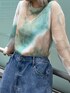 春らしいカラーがかわいい グラデーションニット💚🤍 少し大きめサイズのバギーパンツで ストリートカジュアルなコーデに👟