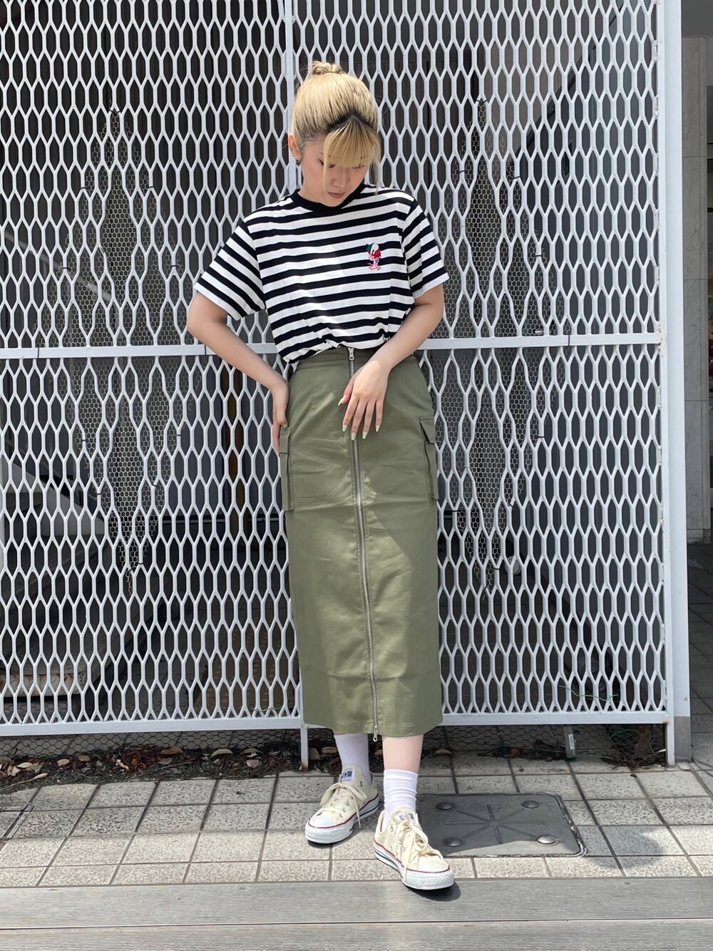 カーゴスカートはシンプルなトップスから 柄物まで幅広く合わせやすいアイテム😉 フロントのZIPを好きな位置にして スリットの長さを変えて楽しめます💚