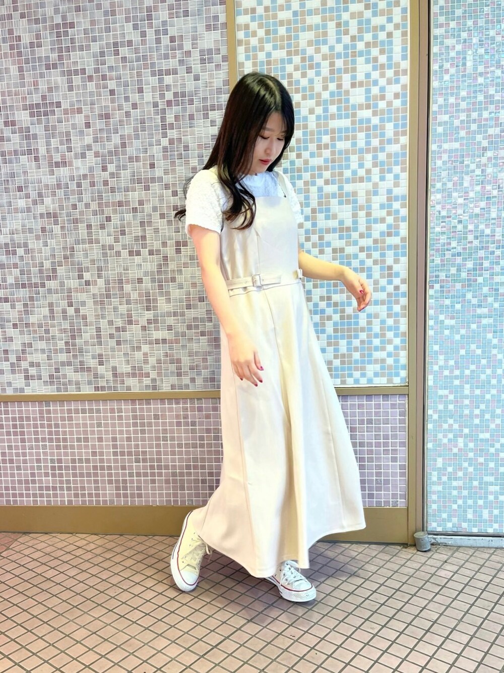 サラッと着れるキレイめワンピース✨ ぴったり目のトップスとあわせ大人っぽい印象に😉 サイドのベルトもポイント🤍