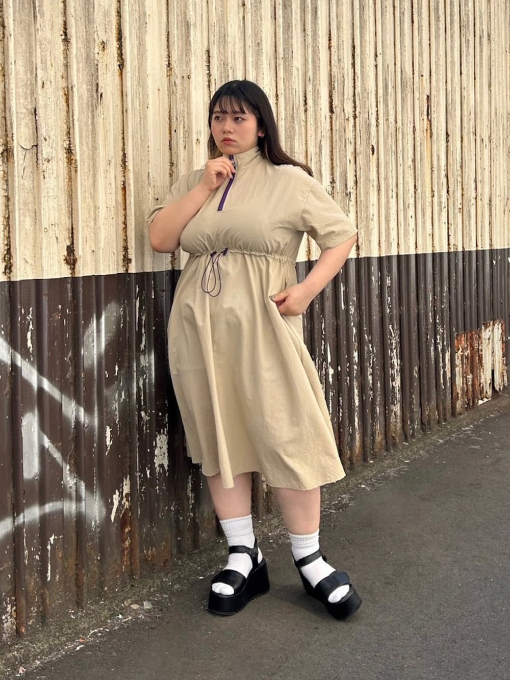 1枚でオシャレにきまるワンピース✌️ ウエストはゴムが入っているので しぼってウエストマークできます😉 ハーフジップとウエストゴムの さり気ないバイカラーもおしゃれ💜