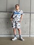 PUNYUS (PUNYUS)のスウェットパンツ「フード総柄スウェットショーパン」を使ったコーディネート