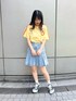 ラインの配色がかわいいTシャツ🍊 デニムミニスカートと合わせて カジュアルガーリーな着こなしに😉