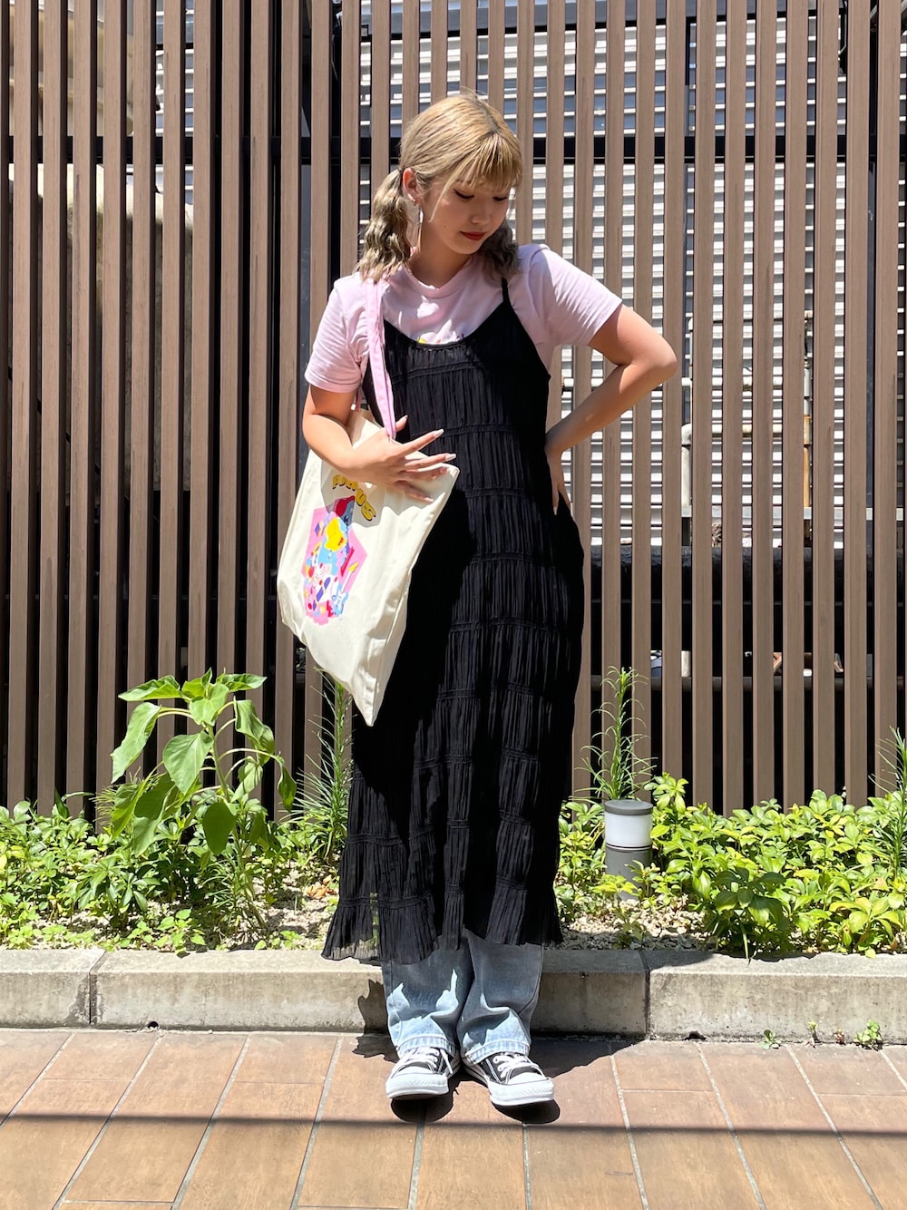 Tシャツとダメージデニムのカジュアルなコーデに シアーワンピを重ねるだけで 一気にガーリーに、そしておしゃれに🖤
