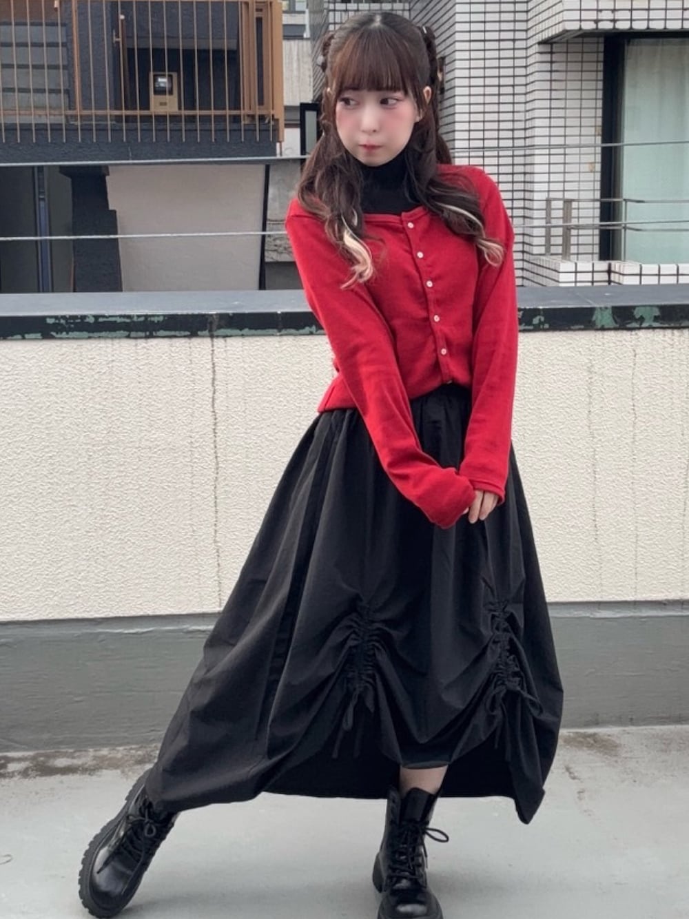 PUNYUS (PUNYUS)のスカート「ドロストフレアスカート」を使ったコーディネート