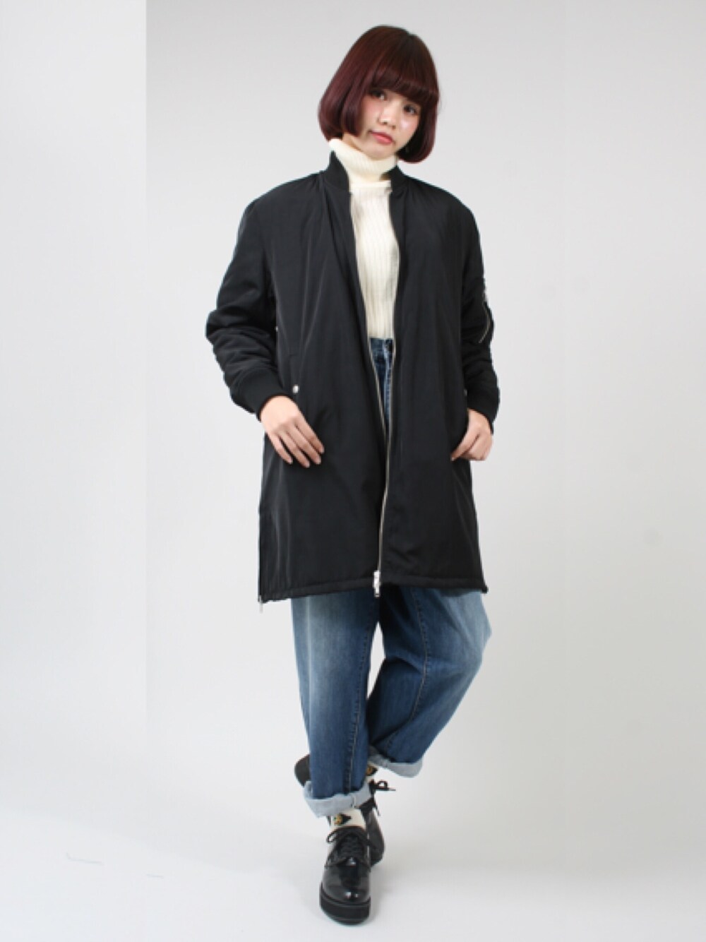 AラインシルエットのロングMA-1は サイドのZIPがアクセント! ボイフレやスキニーなど 今季はデニムとの合わせがオススメ♪