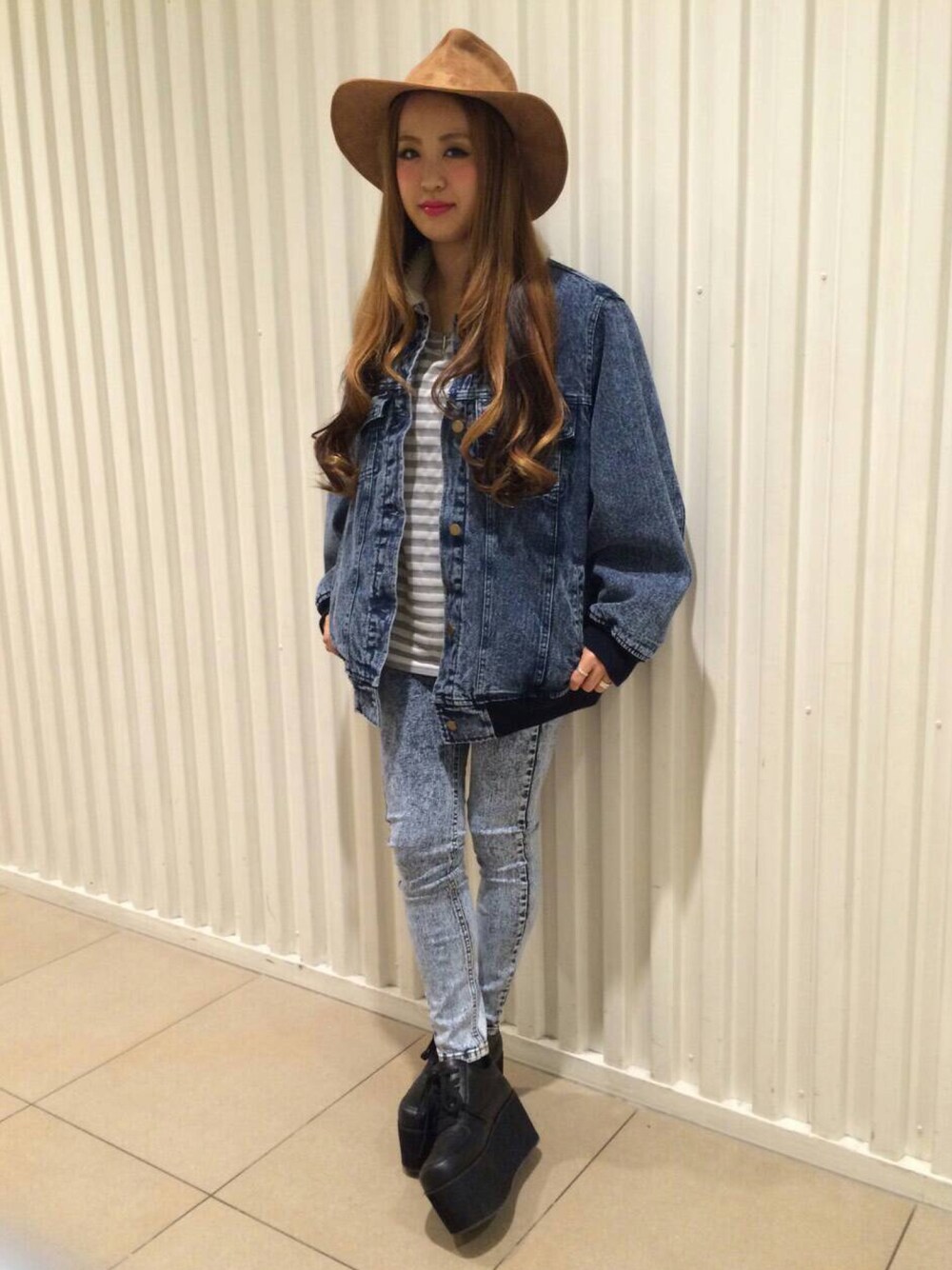 裏ボアのデニムジャケットに ケミカルのスキニーデニムで 個性派デニムオンデニムコーデ♪