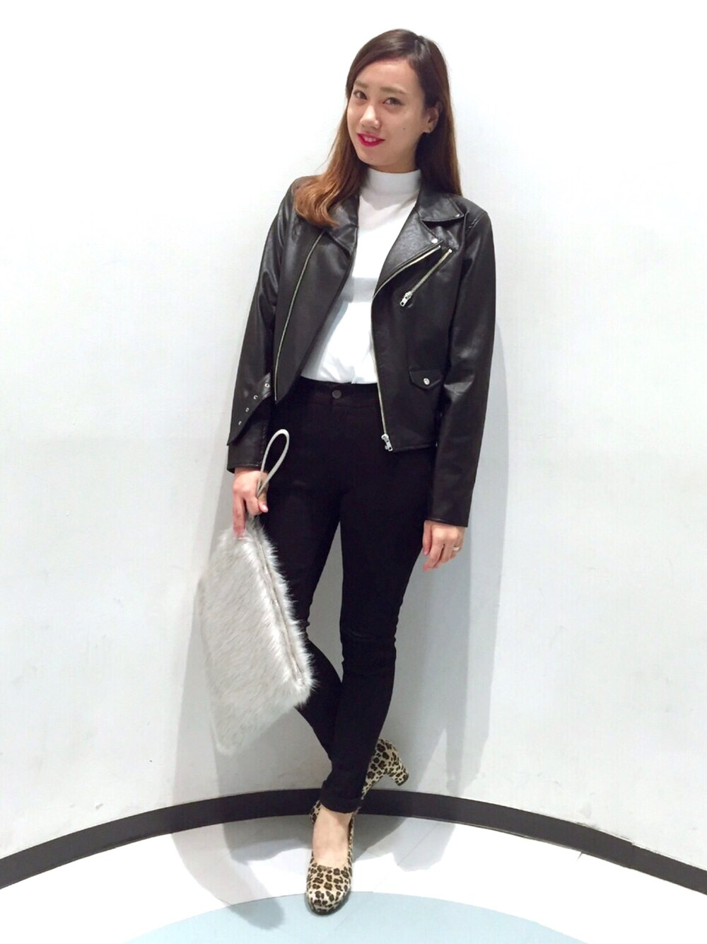 トレンドのアニマル柄もモノトーンコーデなら取り入れやすいです♫
