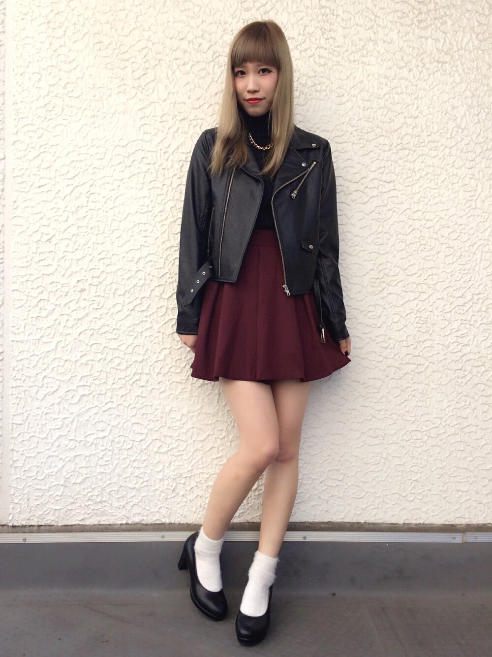 ブラックアイテムに深みのあるワインカラーがベストマッチ♡