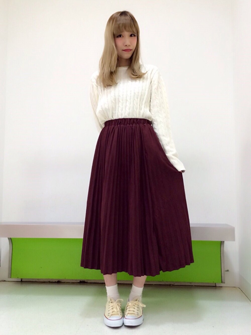 オフホワイト×ボルドー❤︎ 万能に使えるケーブルニットは 今がお買い得です♪♪