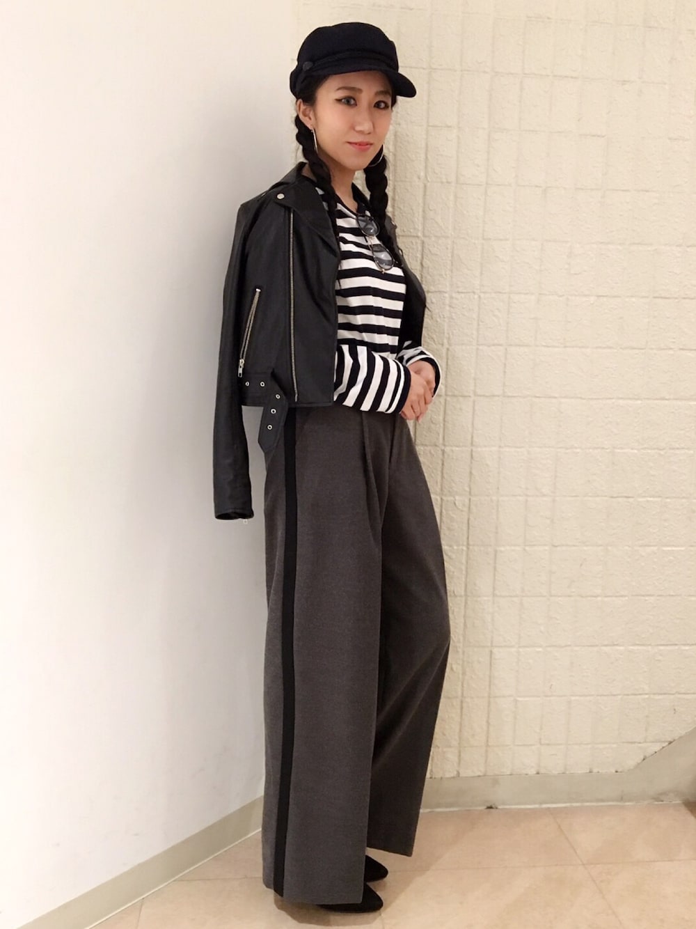 トレンドのマリンキャップや ラインパンツを取り入れたスタイリング♬ モノトーンカラーで大人っぽく♡