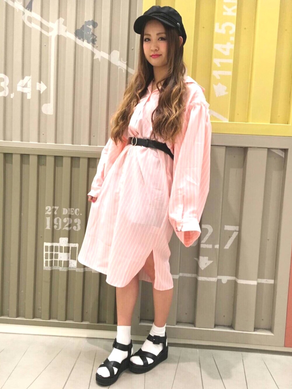 PUNYUS (PUNYUS)のワンピース「ストライプボリューム袖ワンピ」を使ったコーディネート