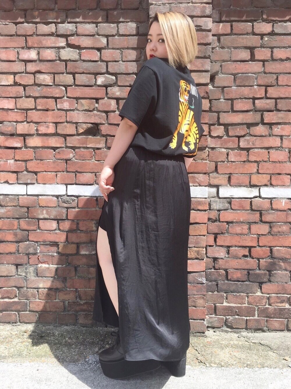 オールブラックコーデ! バックプリントのタイガー🐯Tシャツは ビッグシルエットが可愛い◎ レディース・メンズともにおすすめの アイテムです!🎵