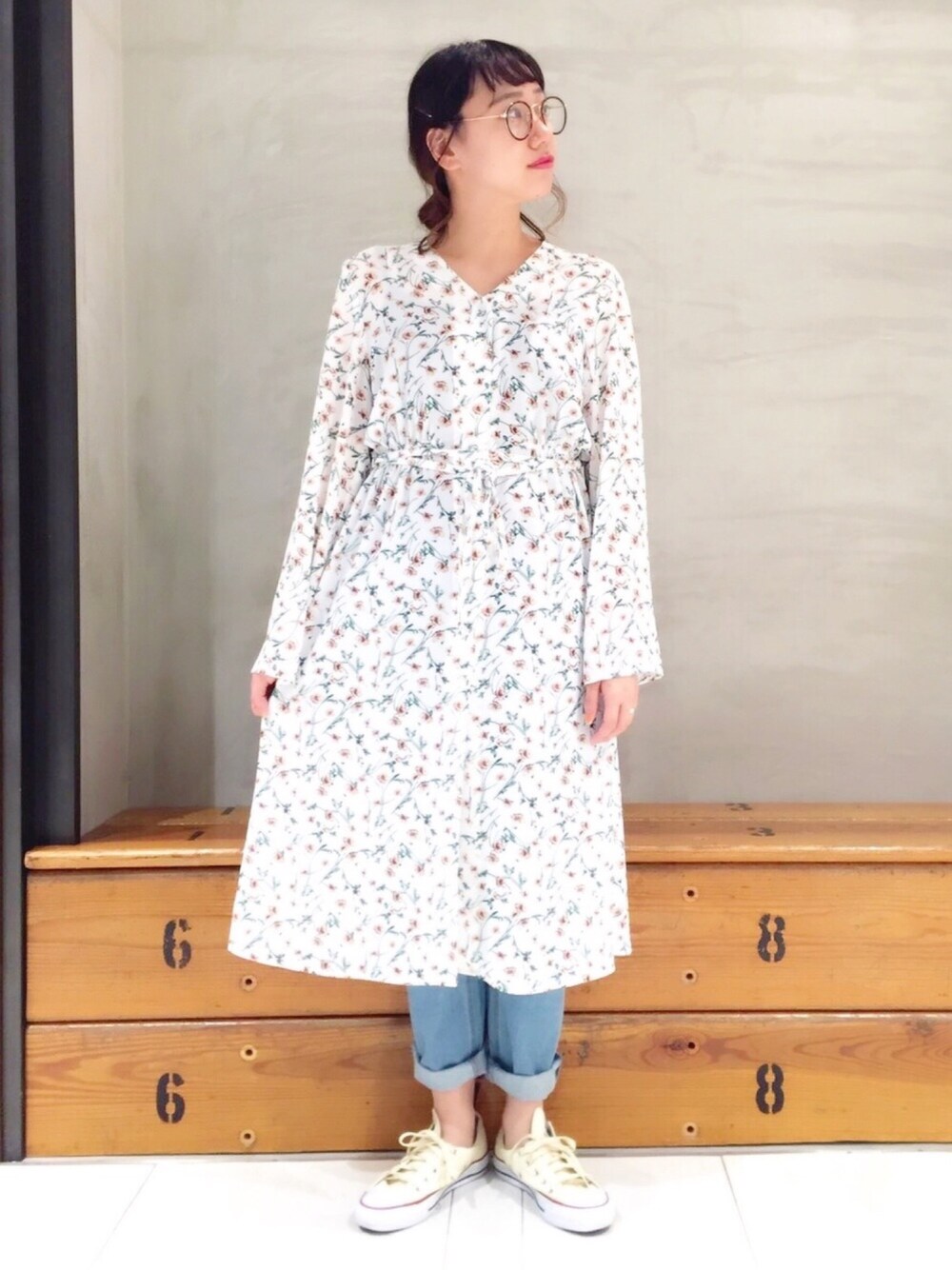 シフォン素材で涼しげな花柄ワンピ♡ デニムを合わせてカジュアルダウン◎